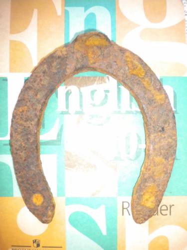 | В тот день,когда мы с Белой волчицей ходили к лошадям,я нашла на поле подкову.Она было втоптана в землю,торчал только ее краешек.Она всю зиму пролежала под снегом,а может и не одну зиму.Я ее не могу оттереть от ржавчины,посоветуйте кто-нибудь пожалуйста,как можно это сделать!